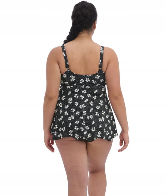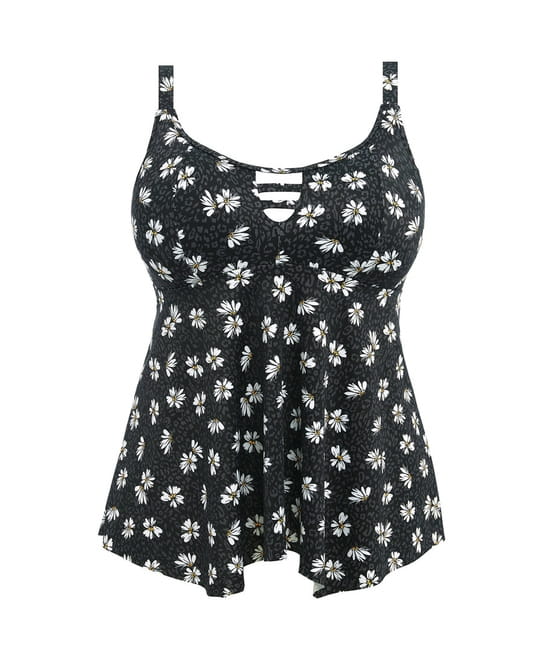 Model Plain Sailing w kolorze Black Daisy ma subtelny, łupkowo-szary wzór lamparta, który dodaje głębi czarnemu podłożu, podczas gdy jasne białe stokrotki nadają kwiecistemu nadrukowi akcent Elomi.