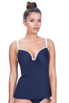 Prosty ale pełen wdzięku – poznaj ofertę strojów kąpielowych z kolekcji In the Navy – granatowo kolorystka podkreślona białym wykończeniem. Klasycznie, naturalnie i pięknie. Moulded Tankini to świetna alternatywa dla jednoczęściowego stroju kąpielowego. W takim fasonie możesz z łatwością opalać brzuch. Miseczki tym fasonie są lekko usztywniane. Wbudowany biustonosz zapewnia wsparcie dla biustu.